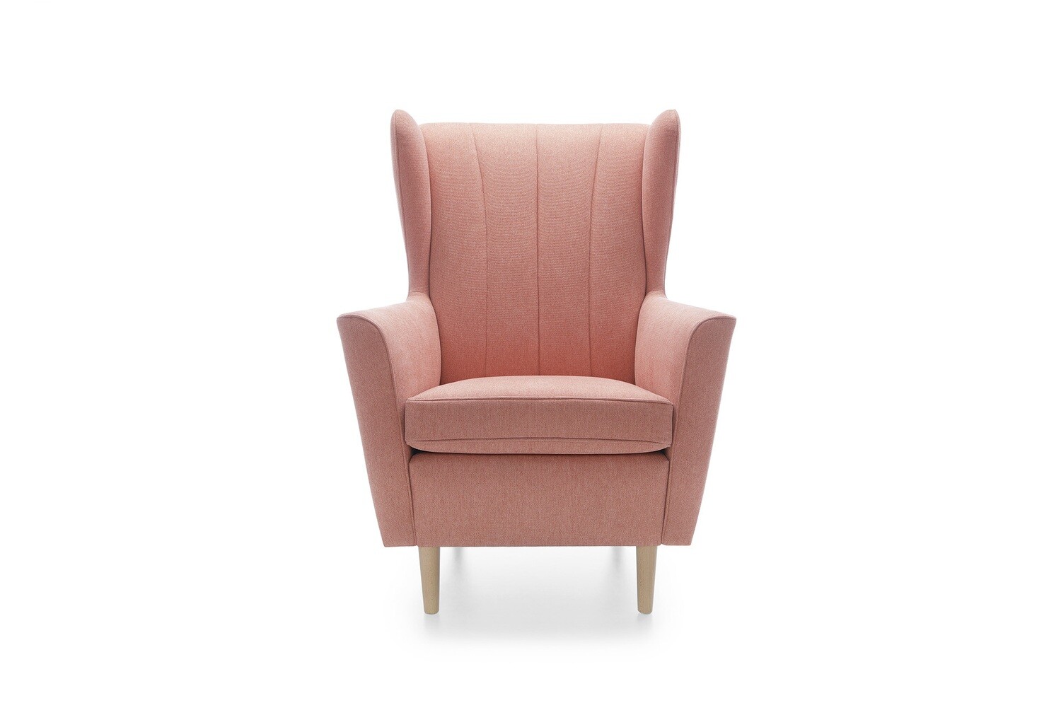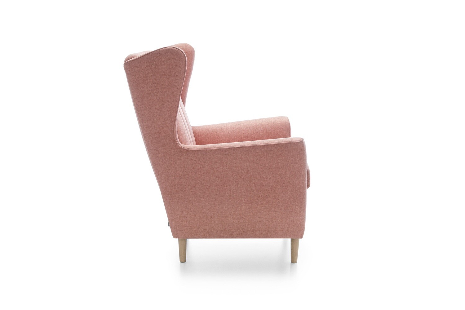 Fotoliu design în stil scandinav cu picioare din lemn masiv, suport pentru picioare opțional. Cu stofa optionala!